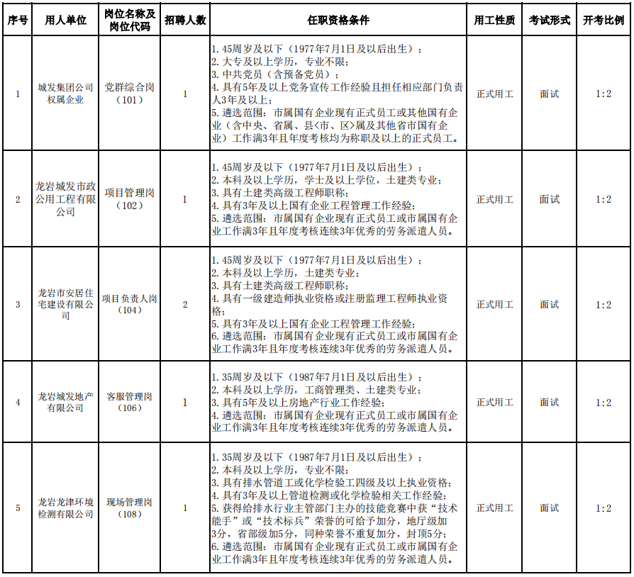 原標題:關於龍岩城市發展集團有限公司所屬企業公開招聘(遴選)工作人員的公告