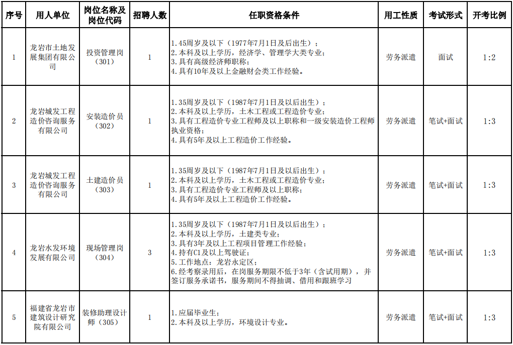 本次筆試、麵試的時間及地點由龍岩人才發展集團有限公司另行通知,請考生保持通訊暢通。